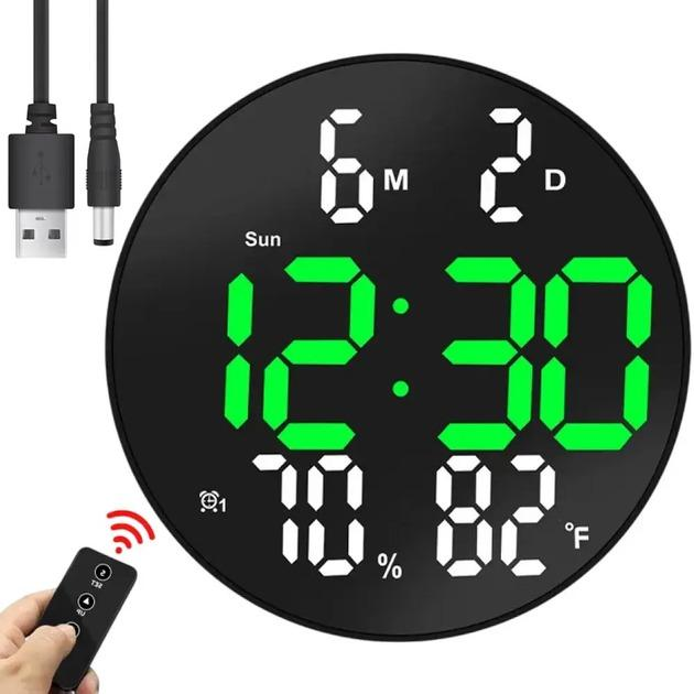 Круглий годинник з датою і градусником на кухню електронний LED WALL CLOCK DS-3813L Чорний (VS7007128)