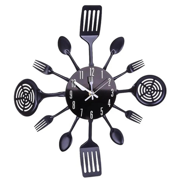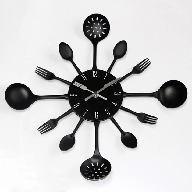 Настінний годинник на кухню Fork Ложки-виделки кварцевий металевий 40 см Чорний