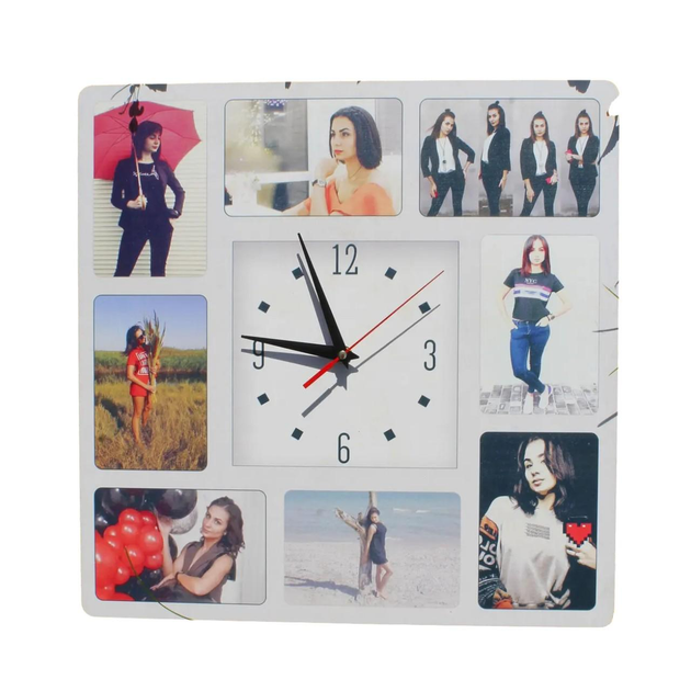 Дерев'яні годинники-картина 46х46 см з гравіюванням на замовлення, настінний з ПВХ