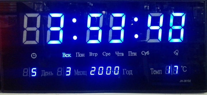 Настінні Led годинник VST-3615 електронні з синім підсвічуванням