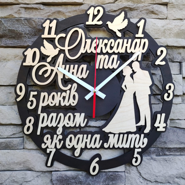 Настінний дерев'яний годинник з безшумним механізмом на річницю весілля