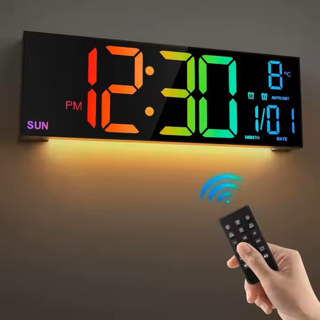 Настінний електронний годинник Tick Tock 1302-RGB LED 16" з пультом Чорний
