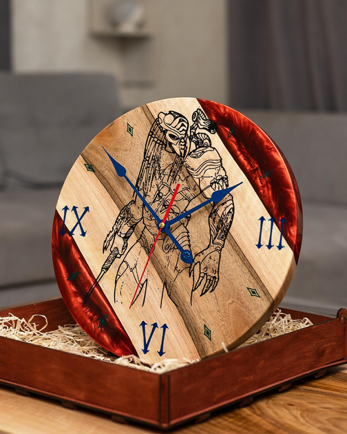 Настінний годинник з дерева та епоксидної смоли "Predator", 34 см
