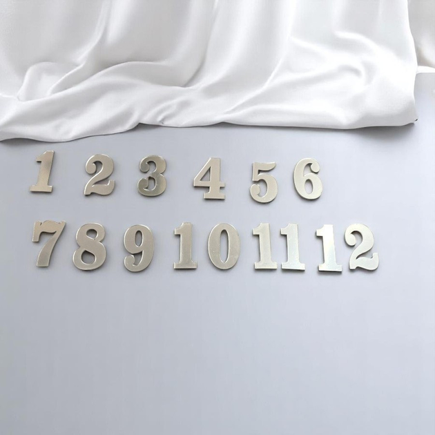 Цифри із дзеркального акрилу кольору срібло для настінного годинника 4 см (1181)