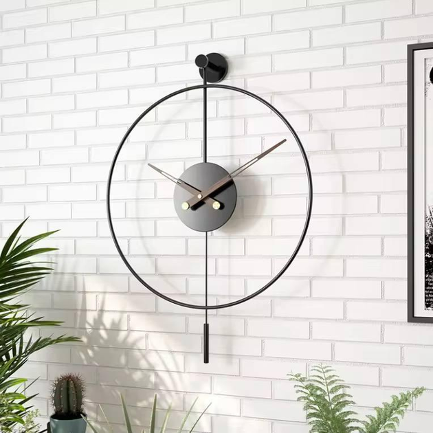 Настінний годинник в металевому корпусі з маятником Чорний Діаметр 60 см
