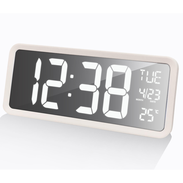 Настінні годинники Technoline електронні білі з LED дисплеєм для дому та офісу термометр календар (531219)