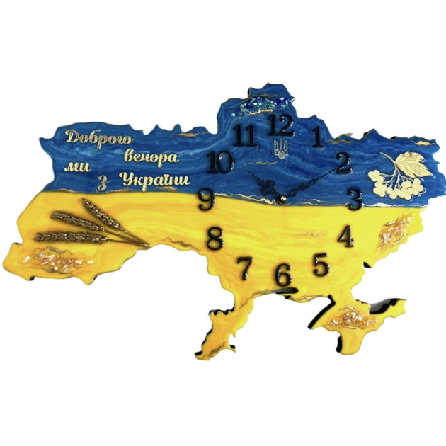 Годинник настінний з епоксидної смоли "Мапа України" 60х40 см (035-60)
