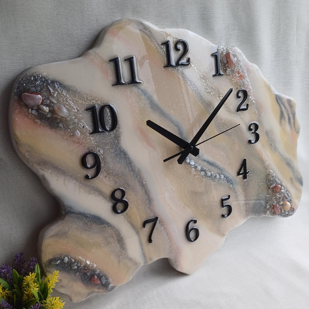 Годинник 60х40 см у формі Жеода (зріз каменю) настінний з епоксидної смоли ручної роботи (ЧЕС0128)