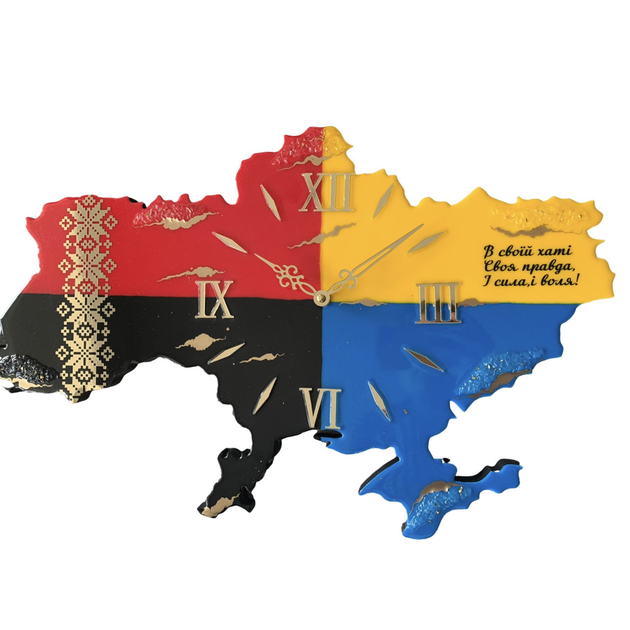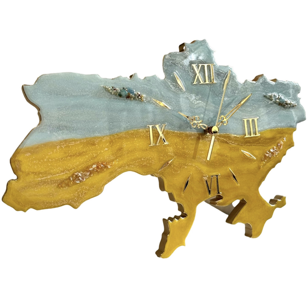 Годинник настінний з епоксидної смоли "Мапа України" 70х47 см (036-70)