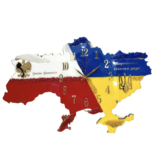 Годинник настінний з епоксидної смоли "Україна Польща" 70х47 см (011-70)