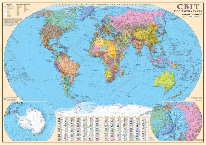 Карта світу політична 105х75 см М 1:32 000 000 ламінований картон на планках (4820114950628)