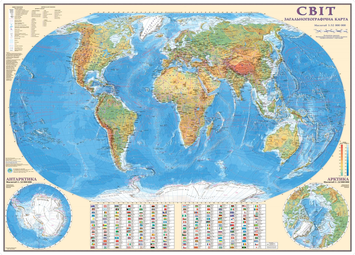 Карта Світ Загальногеографічна 1: 32000000 на картоні 4820114952134