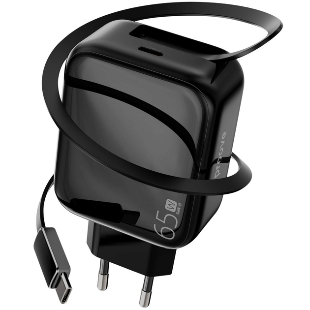 Блок живлення Proove Fixtape GaN, 65 Вт, USB-C, кабель у комплекті, чорний