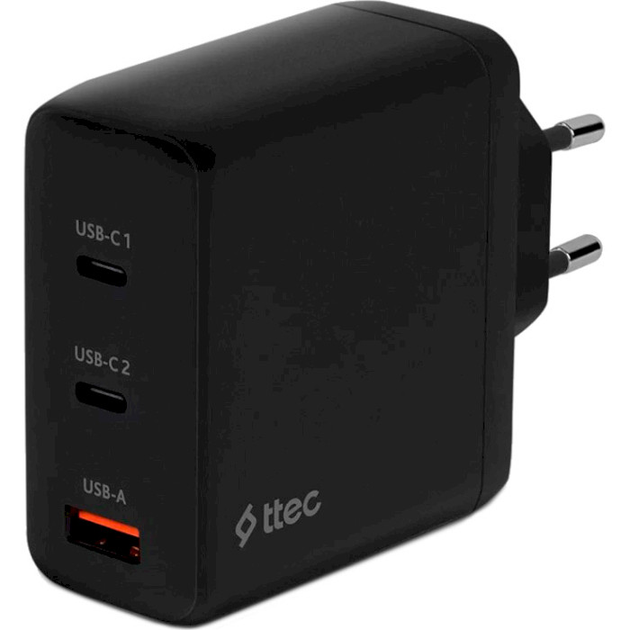 Зарядний пристрій Ttec GaN 120Вт з двома USB-C та USB-A Чорний