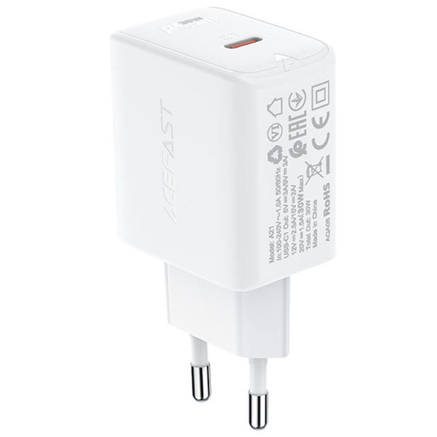 СЗУ Acefast A21 PD30W GaN (1USB-C) White