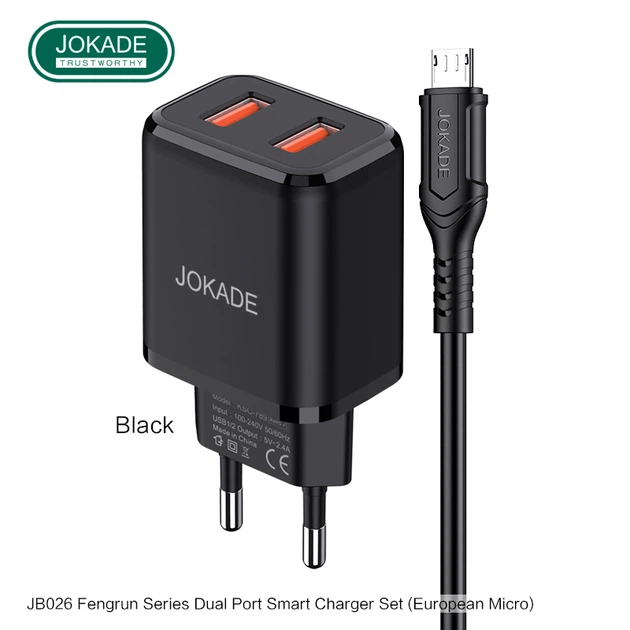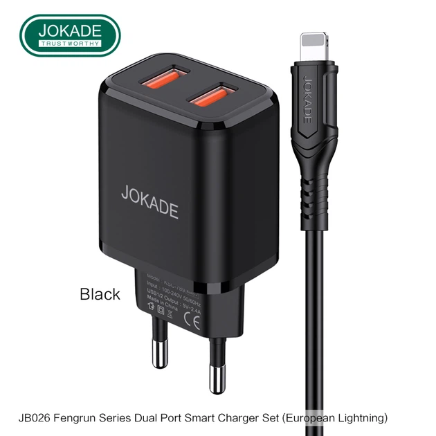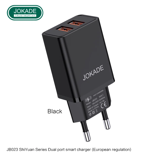 JOKADE JB003 FENGXIANG series dual port USB intelligent charger (EU) Black