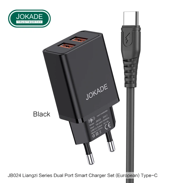 JOKADE JB020 series single port QC3.0 charger set with cable Type-C C Black 18W
