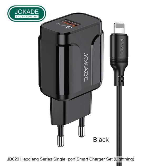 JOKADE JB020 series single port QC3.0 charger set with cable Lightning Black 18W