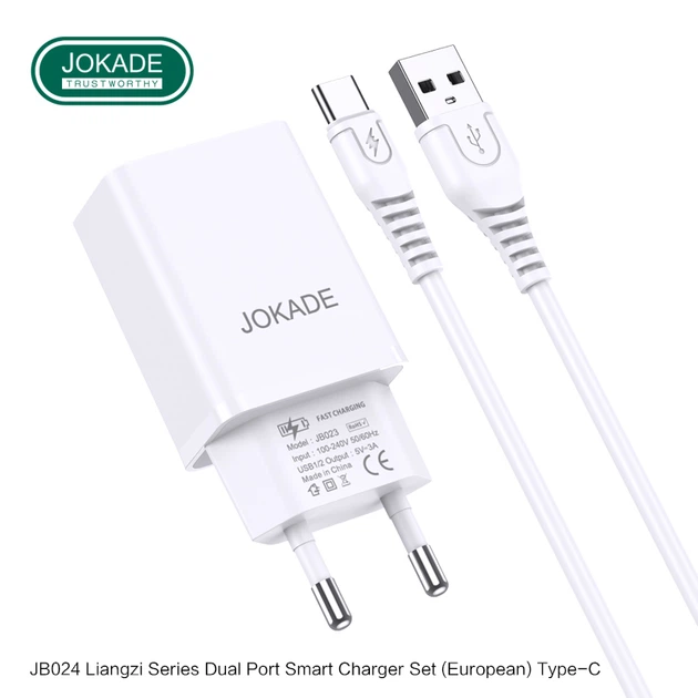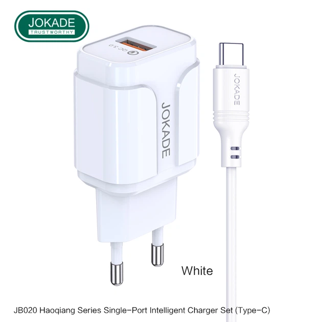 JOKADE JB020 series single port QC3.0 charger set with cable Type-C White 18W