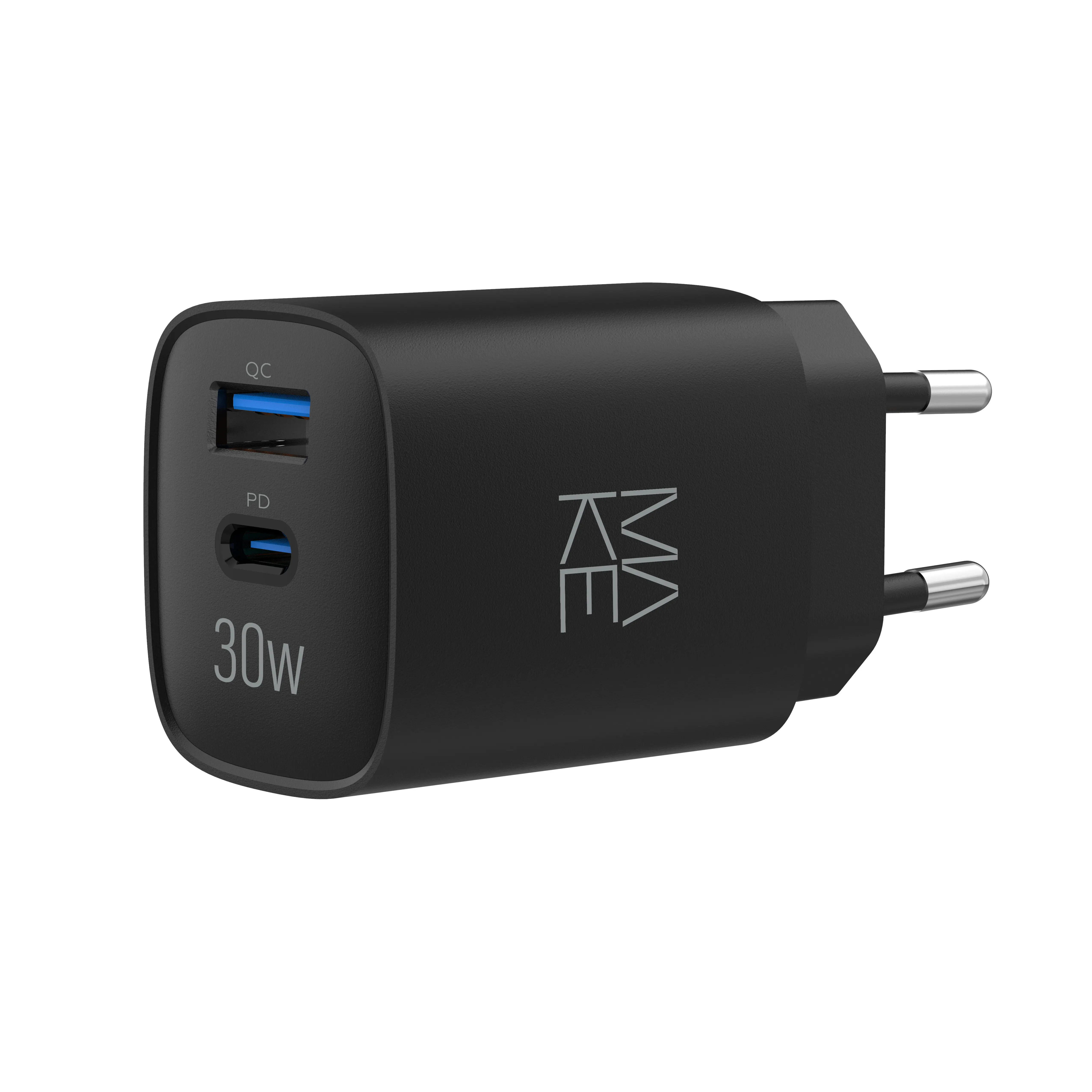 Зарядний пристрій мережевий MAKE 30W GaN3 Type-C PD3.0 + USB QC3.0 Black