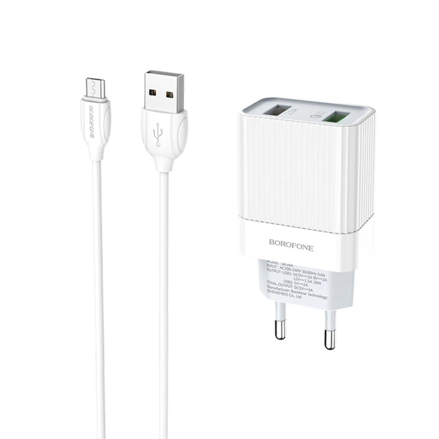 Зарядний пристрій Borofone BA39A 2 USB 18W/3A QC3.0 Micro білий