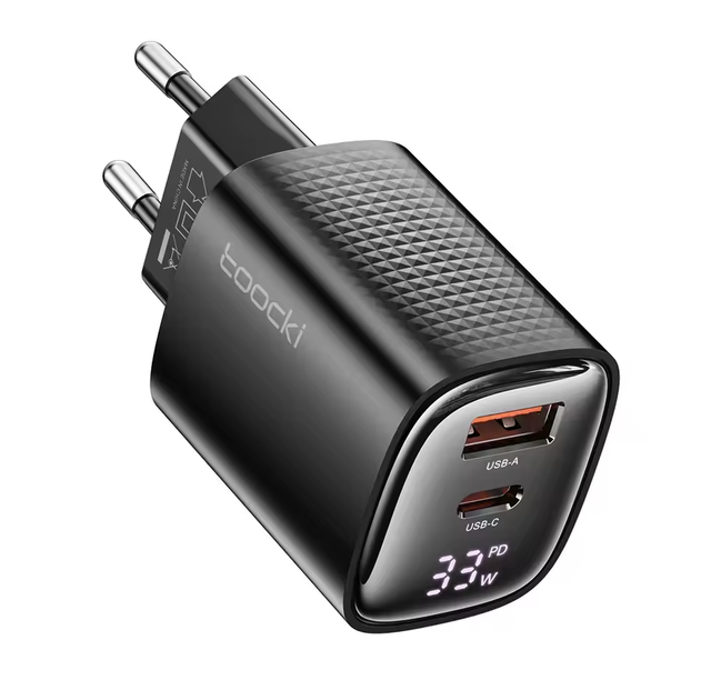 Швидке заряджання з цифровим дисплеєм Toocki 33W GAN Display Type-c USB