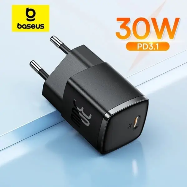 Зарядний пристрій BASEUS 30W GAN CUBE Type-C Адаптер Швидкої Зарядки Quick Charger Original QC PD Чорний
