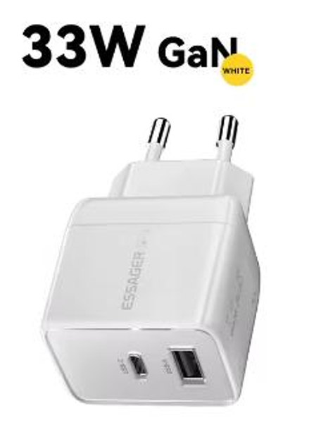 Зарядний пристрій Essager 33W GaN PD USB-C+USB-A White