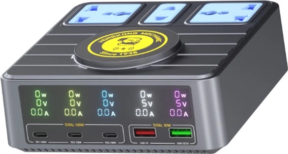 Зарядна станція з цифровою індикацією Mechanic S-Power, 3xPD3.1-100W, QC3.0-15W, USB-A, Wireless Charging, 3xSocket, 220V/13