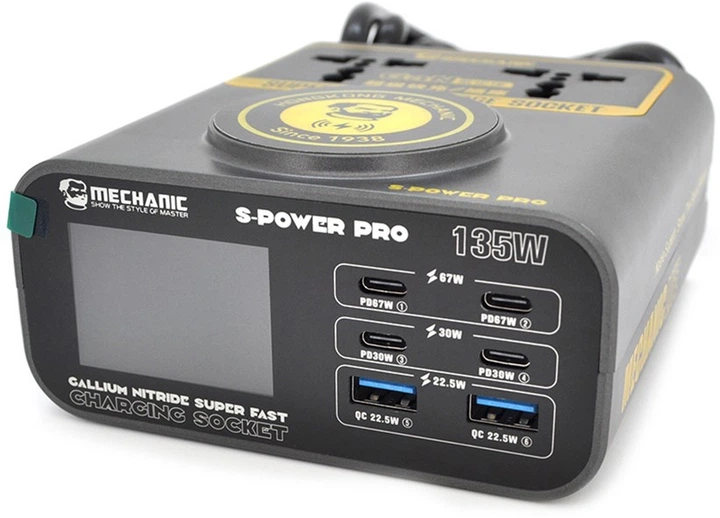 Зарядна станція з цифровою індикацією Mechanic S-Power Pro, 4xPD3.1-30W, 2xQC3.0-15W, Wireless Charging, 2xSocket, 220V/135W
