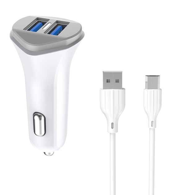 Автомобільний зарядний пристрій Aspor A903 блочок (2USB/34A) + USB кабель Micro-білий