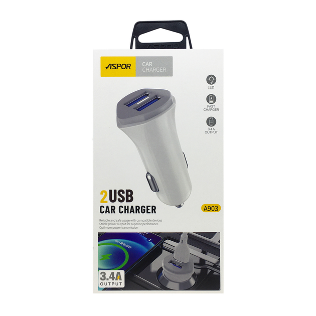 Автомобільний зарядний пристрій Aspor A903 (2USB/3.4A) - білий