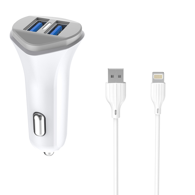 Автомобільний зарядний пристрій Aspor A905 (2USB/2.4A) + USB кабель Lightning-білий