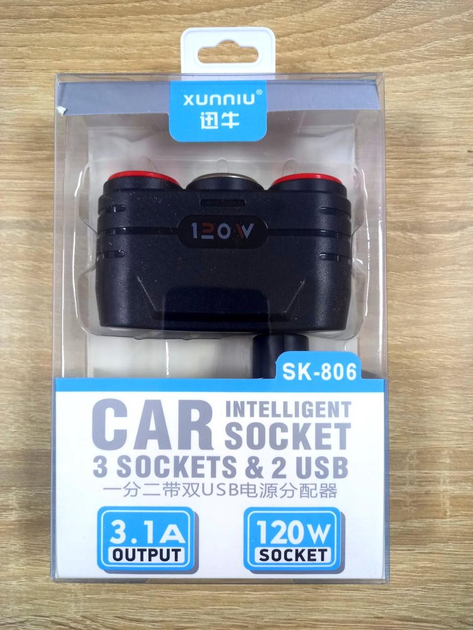 Автомобільний розгалужувач двійник прикурювача Xunniu SK-806