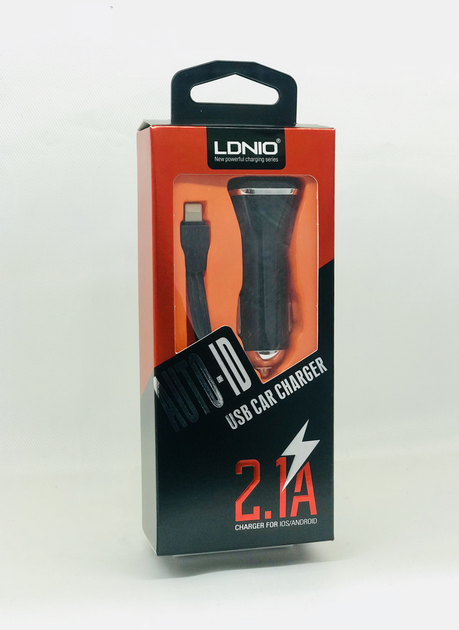 Автомобільний зарядний пристрій LDNIO 2 USB порти 2.1A з кабелем для iPhone