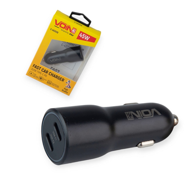 Зарядка від прикурювача Voin 2USB Type C 3.0А 2PD (45W), коло чорний