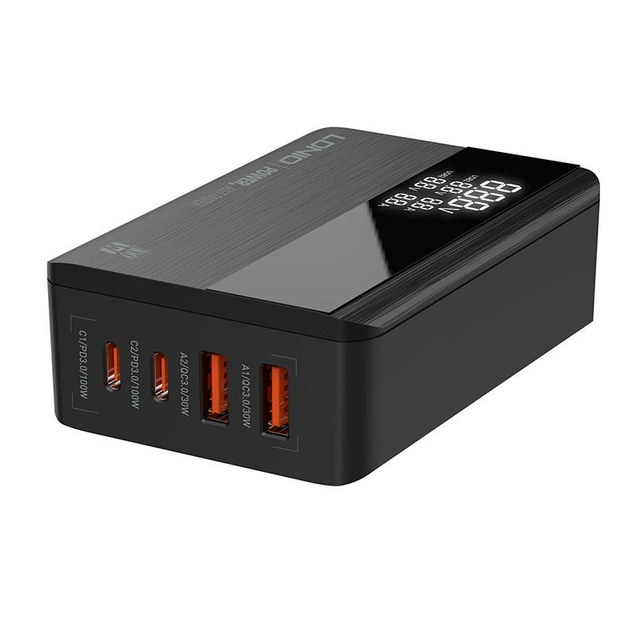 Зарядний пристрій LDNIO 2хUSB 2хType-C PD /QC 100W LED дисплей кабель Black (A4809C)