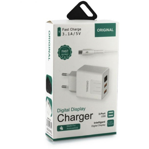 Адаптер 220V на 2 USB (A-14) з дисплеєм CX QC03 / Зарядний пристрій / Блок живлення для заряджання телефону