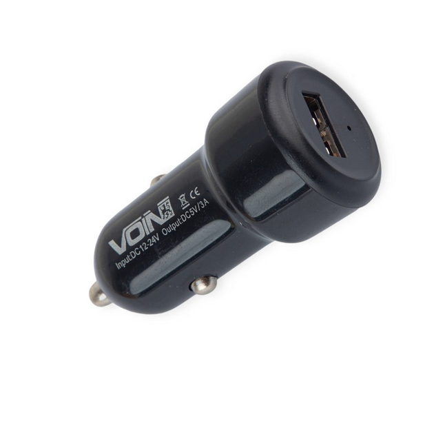 Зарядний пристрій від прикур. Voin 1USB 3.0А круг чорний, Євро