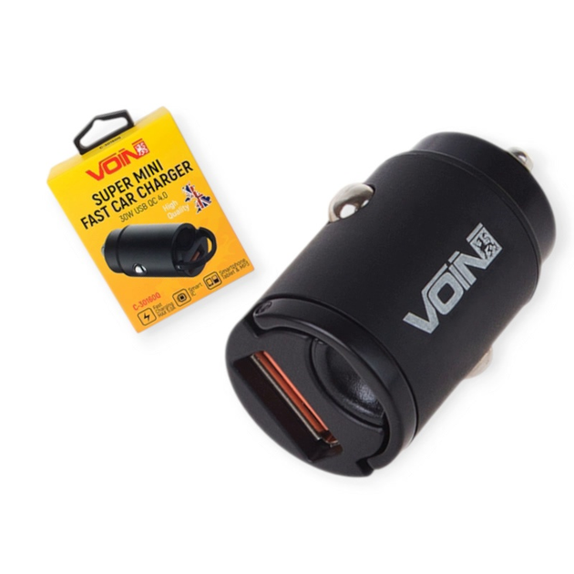 Зарядний пристрій від прикур. Voin 1USB 4.0А QC (30W), чорний Євро (Super Mini)