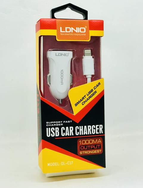 Автомобільний зарядний пристрій LDNIO з кабелем для iPhone 1 USB порт 1A