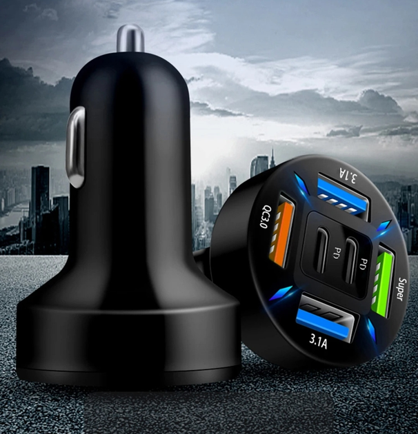 Автомобільна зарядка USB у прикурювач на 6 виходів: Usb PD Super QC3.0