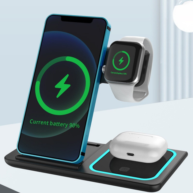 Бездротова зарядка 3-в-1, Чорна / Бездротова зарядна станція