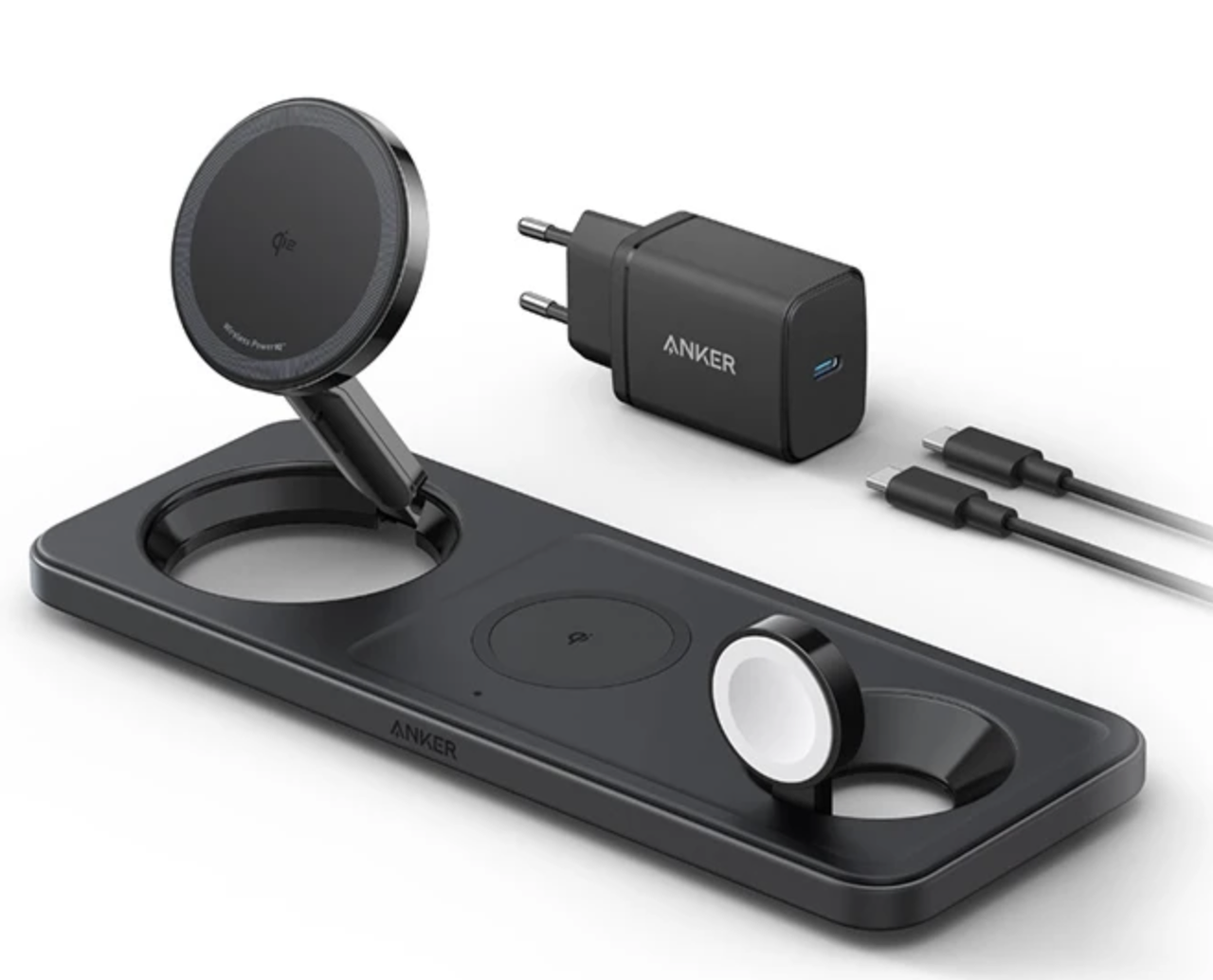 Бездротовий зарядний пристрій Anker Foldable 3-in-1 Wireless Charging Qi2 15W Ultra-Fast 40W USB-C Charger Black A25M1