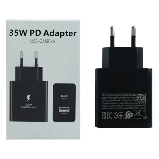 зарядка тайпсі, блок зарядки type c + usb для телефону самсунг, айфон, xiaomi 35W швидка зарядка PD + кабель