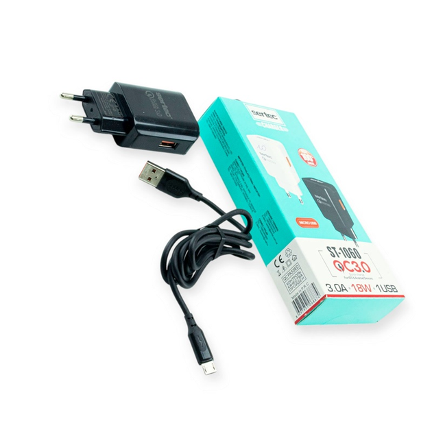 Зарядний пристрій від мережі 220В на USB 2.1A , кабель - Micro USB, чорний ST-1060 black Sertec