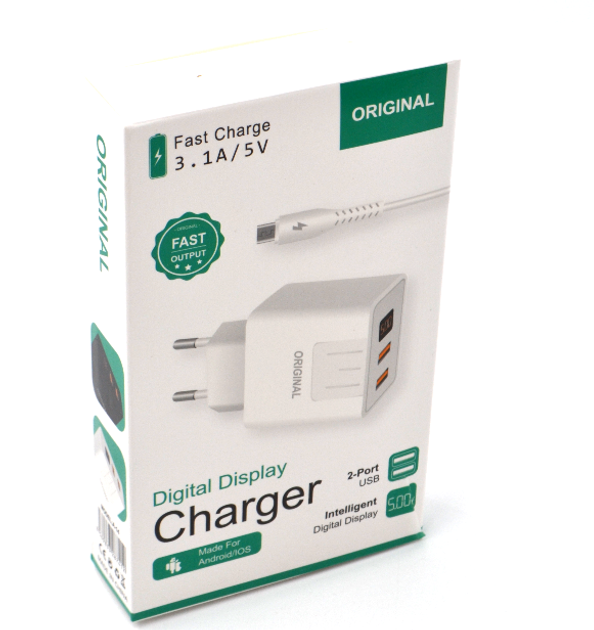 Мережевий зарядний пристрій A-14 потужна з двома USB-портами 5В 3.1А