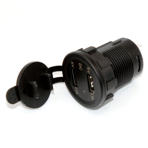Зарядний пристрій авто - гніздо USB на 2, діаметр 29мм, (вхід 12/24V, вихід - 5V, 2.1A) + VOLTMETER