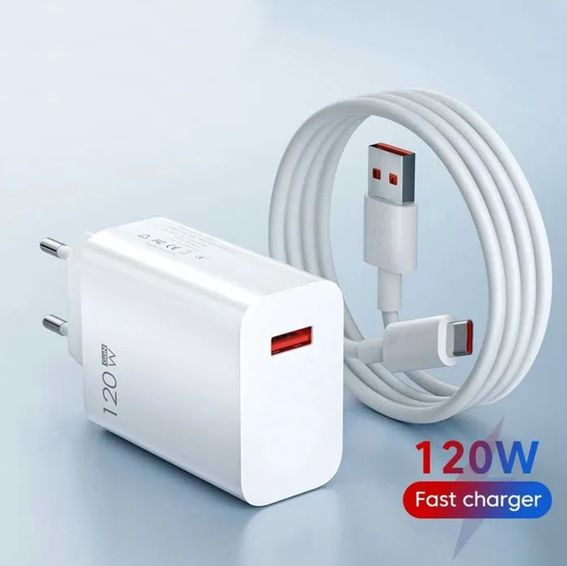 Мережевий зарядний пристрій 120W з USB Type-A, швидке заряджання QC 3.0, кабель у комплекті