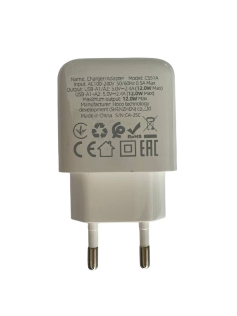 Мережевий зарядний блок Hoco CS51A з двома USB-портами